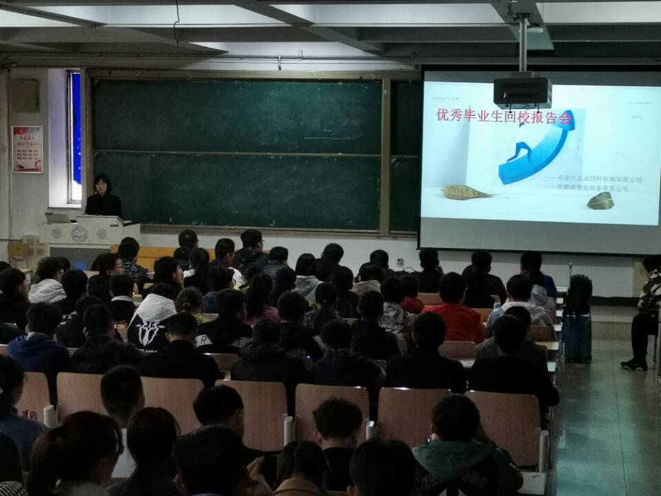 2019年10月26日下午,在开云主教学楼B105教室,召开了一场石家庄正诚饲料机械有限公司组织的优秀毕业生回校报告会。