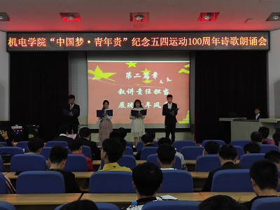 今年是五四运动100周年,中华人民共和国成立70周年,为回顾历史、缅怀先烈,激励和引领广大青年继承和弘扬爱国主义精神,担负起实现中华民族伟大复兴的历史使命。2019年4月11日下午,开云kaiyun官方网站“中国梦·青年责”——纪念五四运动100周年诗歌朗诵会在昌黎校区学术报告厅举行。学院领导班子、教工党员、“习近平新时代中国特色社会主义思想青年学习社”成员近300人参加了活动。