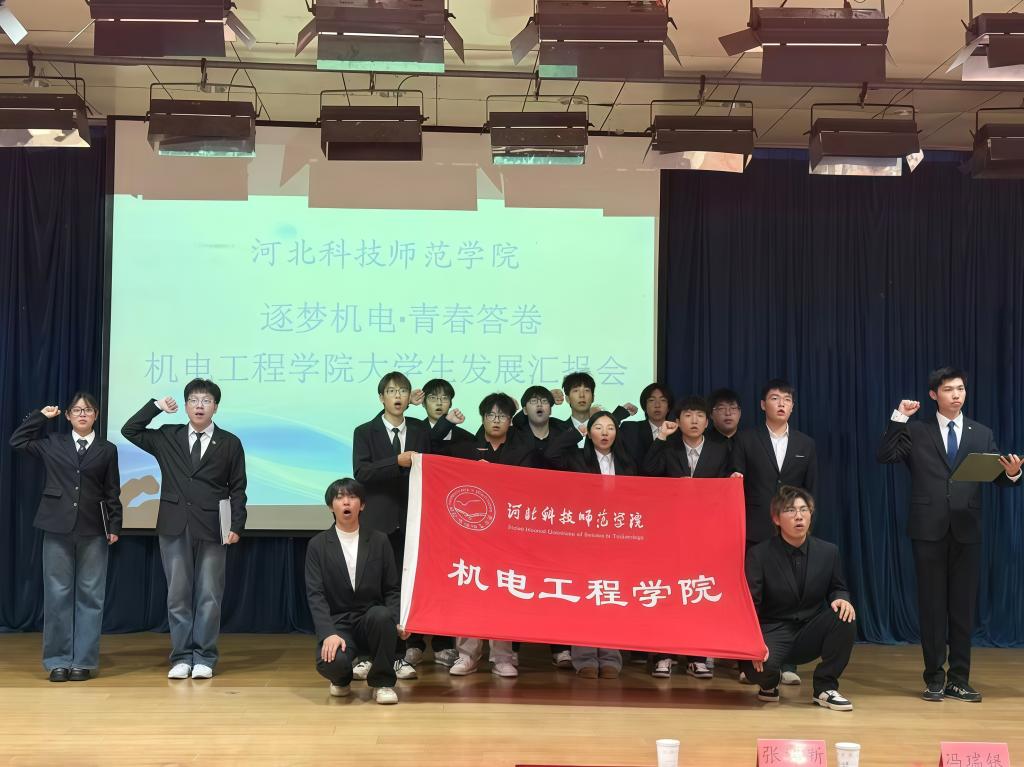 2025年12月11日,开云kaiyun官方网站在开发区校区学术报告厅举办“逐梦机电·青春答卷——大学生发展汇报会”。校党委常委、副校长冯瑞银,学生处处长张红新,学院领导班子成员、辅导员、班主任、学业导师及学生代表共200余人参加了活动,部分学生家长通过线上直播“云端”观摩,共同见证机电学子在融入强国建设和民族复兴进程中的成长足迹。