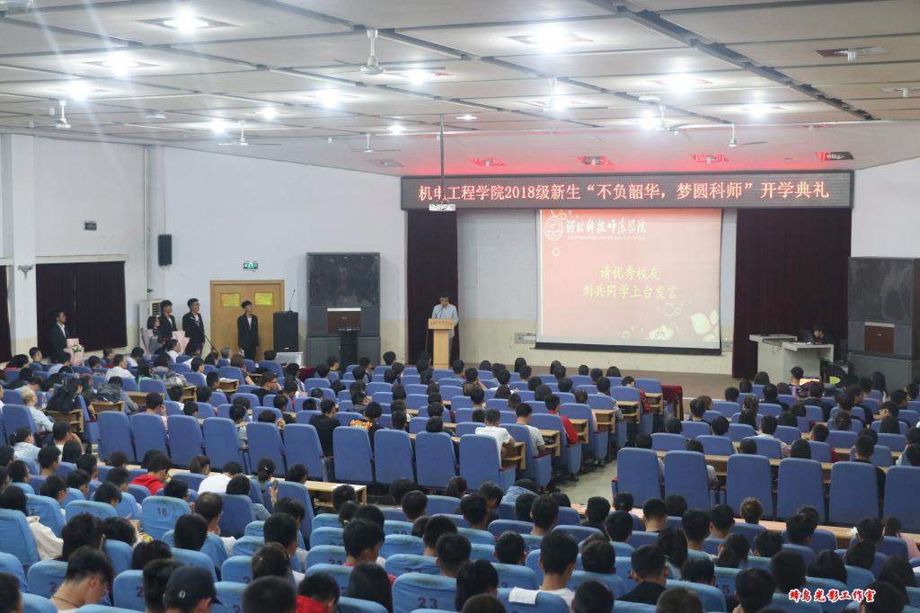 朗朗金秋,丹桂飘香。9月27日下午,开云kaiyun官方网站2018级新生“不负韶华,梦圆科师”开学典礼在昌黎校区学术报告厅隆重举行。机电学院领导班子、全体教职工、373名全体新生参加了开学典礼。