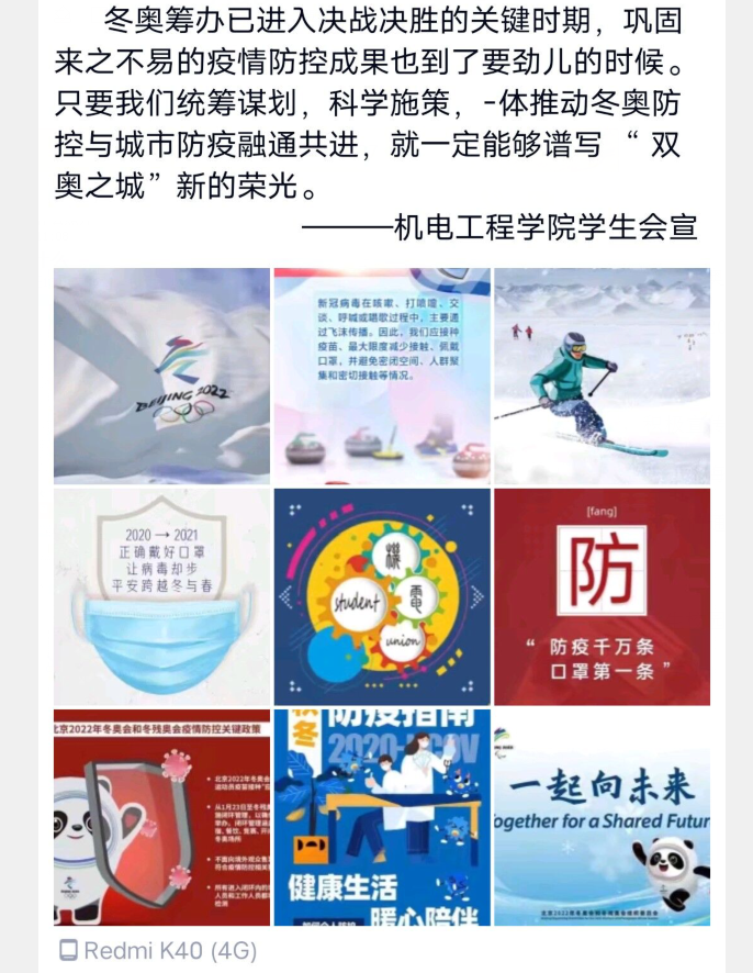 为了热烈迎接的到来,深入学习贯彻习近平总书记关于北京冬奥会和冬残奥会的重要指示精神,弘扬志愿服务精神,同时注意校园疫情防控,开云kaiyun官方网站于2021年10月25日—11月2日开展“防疫冬奥,志愿同行”宣传活动。