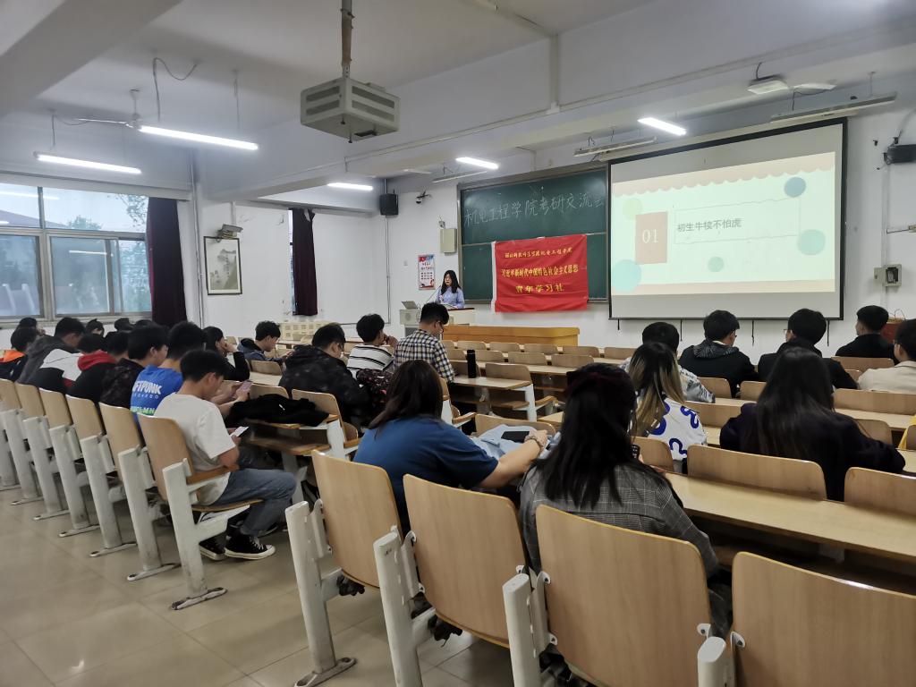 交流会上,考研录取毕业生从考研学校和专业选择、考研心理、考研时间规划、专业课程学习等方面为大家详细分享考研上岸经验;在互动环节中,针对同学们提出的具体问题,学长们一对一耐心指导,现场氛围生动热烈,掌声不断。本次交流会议探讨内容深入具体,坚定了同学们考研信心和决心,明确了考研努力方向。