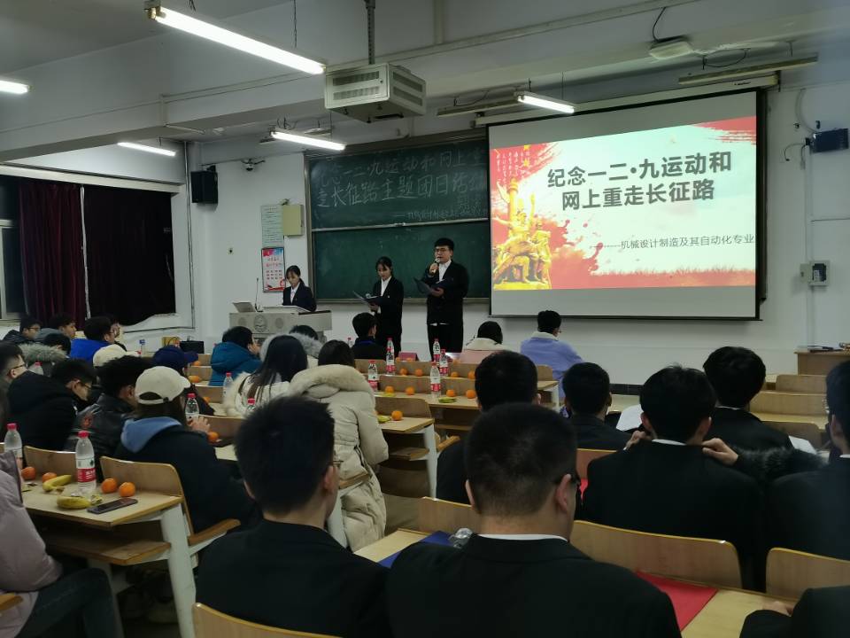 为响应团委号召,进一步让同学们更好的了解一二九抗日救亡运动和十九大精神,开云kaiyun官方网站机械设计制造及其自动化专业2004团支部于2020年12月17号在主楼C208举行了以“纪念一二·九运动和网上重走长征路”为主题的团日活动。